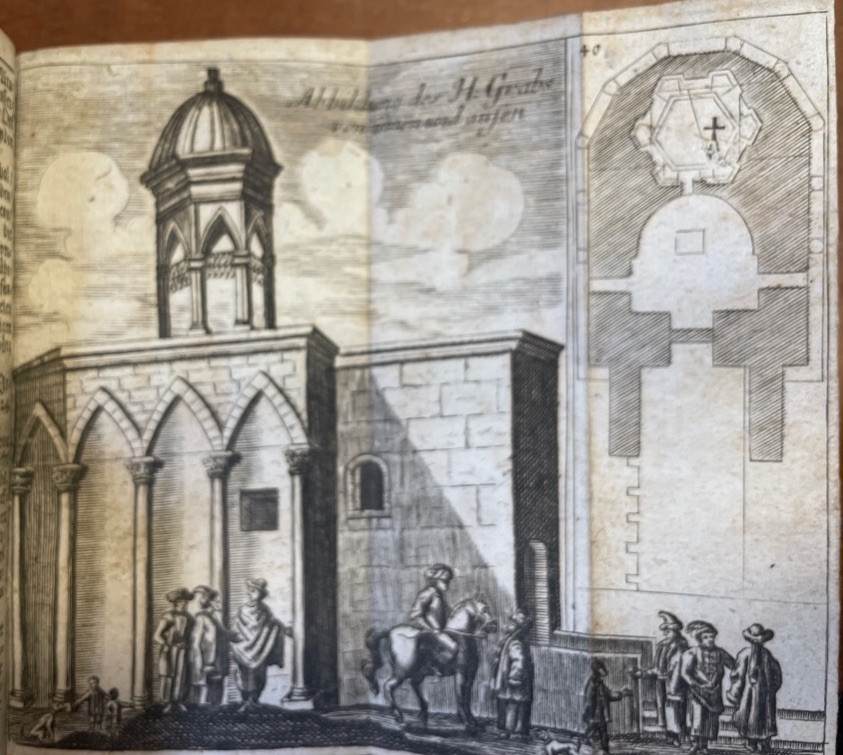 [3] Bl., 361 S., [9] Bl., [2] gef. Bl. : Ill. Mit einem gestochenen Frontispiz und zwei ausfaltbaren Kupfertafeln. Duodez. Pappband der Zeit über Holzdeckel. Vorderer Deckel zur Hälfte abgebrochen.