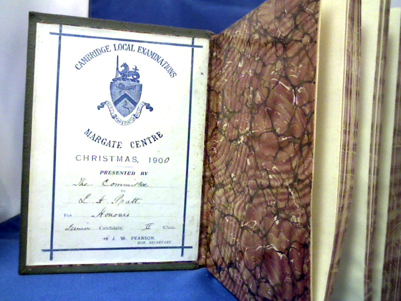 XVIII, 643 S. mit sehr zahlreichen Illustrationen. 8° , fein genarbter, mittelgrüner Ganzlederband mit reicher Goldverzierung und farbigem Titelrückenschild und Wappensupralibros (Buchpreiseinband „Cambridge Local Examinations Margate Centre incl. Widmungsblatt auf dem Innendeckel) und farbig marmorierter Schnitt.