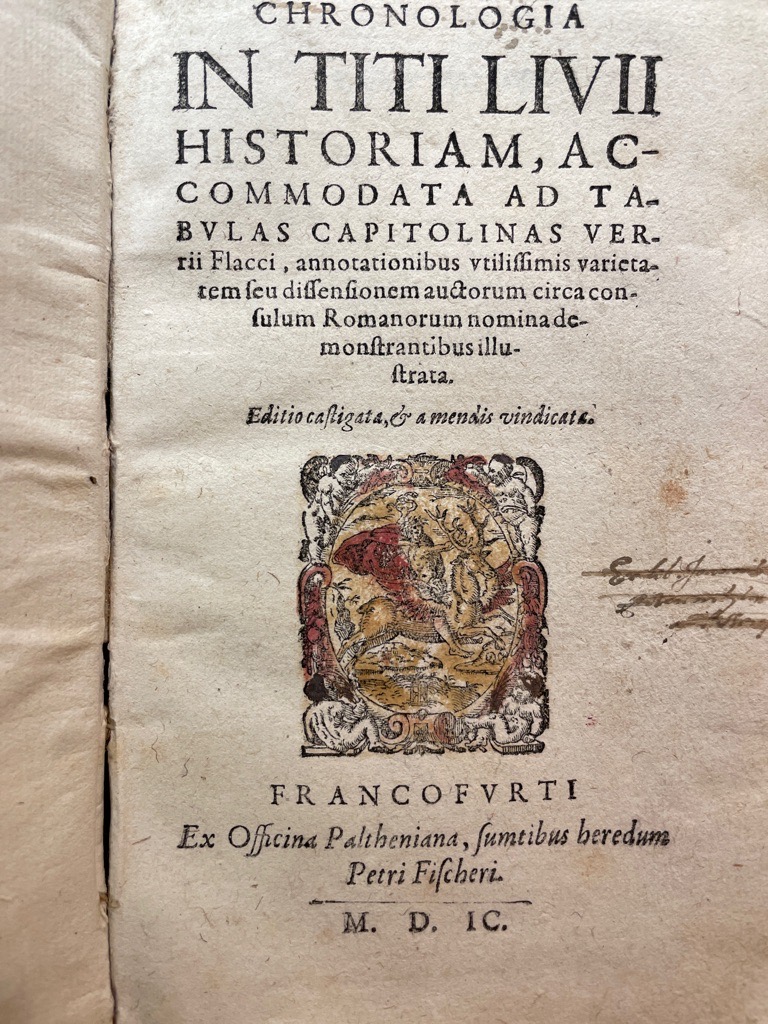 vgl. Schweiger II, 531ff.; Zuerst wohl als Supplement zur der großen Frankfurter Ausgabe bei Feyerabend erschienen. Die gesuchte und sehr seltene Chronogie Zu Livius von Grelleius – mit sehr differenzierten Indices- und den Observationes von Godelevaus. Zuerst wohl als Supplemente zu der großen Frankfurter Ausgabe bei Feyerabend erschienen, hier im schönen Nachdruck bei Palthenius.