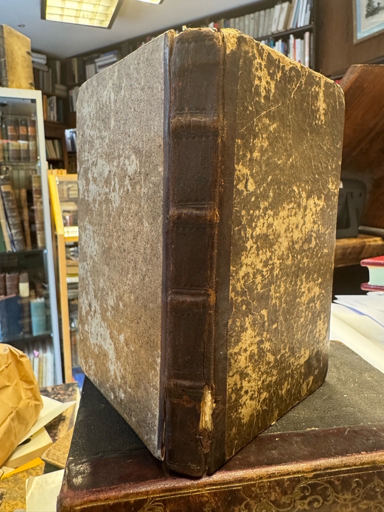 2 nn Bll.; 205 S. 4 nn Bll. Halblederband der Zeit (am Rücken mit Fehlstelle und im Ganzen berieben