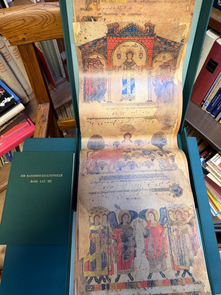 Originalgetreue Wiedergabe der cassinesischen Exultetrolle Barberini latinus 592 aus dem Besitz der Biblioteca Apostolica Vaticana. Sie gehört zu den schönsten illuminierten Handschriften der Romanik und wurde von Abt Desiderius (1058-1087), der Monte Cassino zu einem führenden Kulturzentrum ausbaute, in Auftrag gegeben.