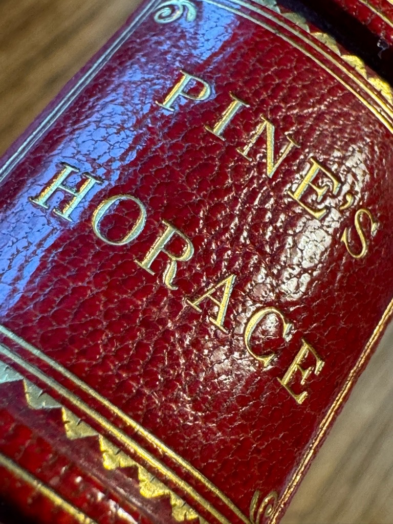 Graesse III, 354; Brunet III, 320; Cohen-Ricci I, 497-98; Lewine 246. Lowndes 1113. Blumenthal 24 und Taf. 72. Cat. PMM II, 105. – „Cette ed., entierement gravée, est remarquable par l’elegance des ornements, et la correction en est plus exacte qu’on ne le croit generalement.“ (Brunet). Das erste ganz in Kupfer gestochene Buch in Europa (Thieme/B. 27, 53. – Ex. des ersten Druckes, kenntlich durch den Druckfehler im Medaillon Bd. II, S. 108; Casar Tribun. „Post Est“ (statt „Postest“). Das editorische Hauptwerk des Londoner Kupferstechers und Verlegers John Pine (16901756). Am Anfang beider Bände die ebenfalls gestochene, ausführliche Liste der Subskribenten. Breitrandiges, sauberes, druckfrisches Exemplar gedruckt auf festen, leicht getönten Bütten in den prächtigen und Reviere & Sons gebundenen und signierten Einbänden.