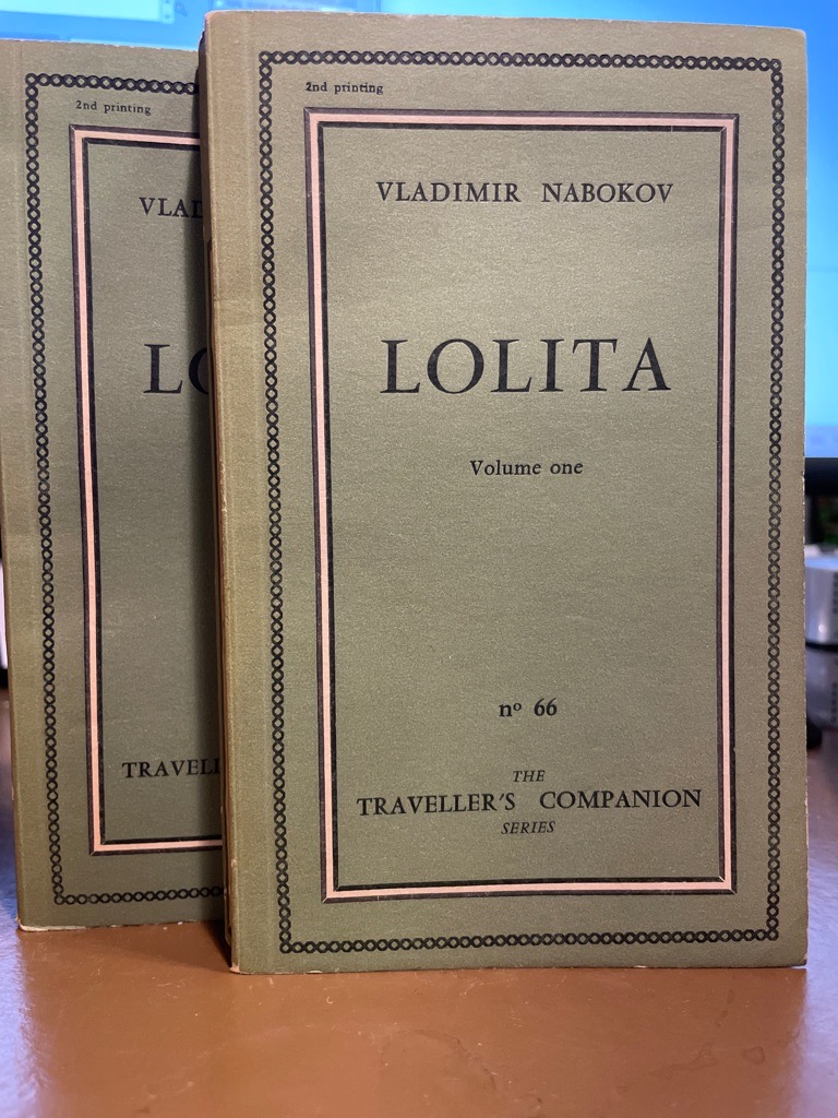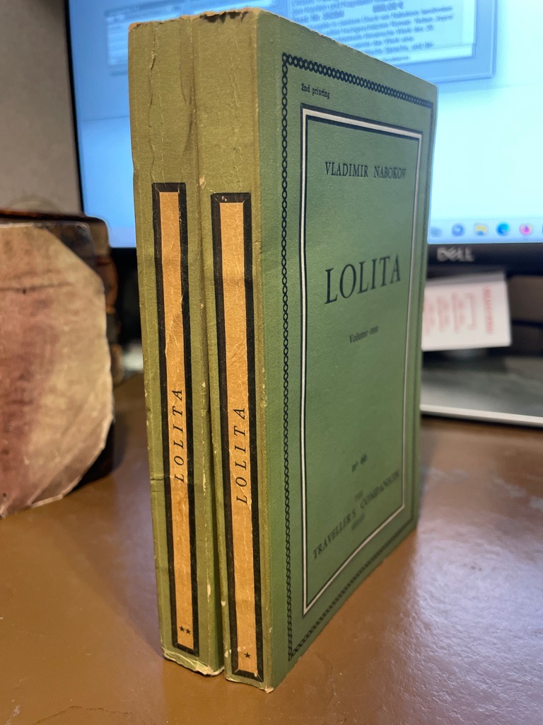 Erste Ausgabe in zweitem Druck von Nabokovs berühmten und von ihm selbst hochgeschätzten Roman. Neben Joyce‘ Ulysses das provokanteste literarische Werk des 20. Jahrhunderts. Nabokov nannte das Werk eine „Liebeserklärung“ an die englische Sprache, und der ästhetische Genuß dieser erklärten Liebe ist ungleich größer und dauerhafter als das längst nicht mehr so Skandalöse seiner Handlung. Das reduzierte und trivialisierte Bild des frühreifen verführerischen Mädchens, das man mit der sprichwörtlich gewordenen Lolita gewöhnlich verbindet, entspringt der verengten Sichtweise auf das Skandalträchtige des Romans, wird seiner Vielschichtigkeit und Komplexität aber nicht gerecht. Das gilt nicht nur für die Kindfrau Dolores alias Lolita, sondern eher noch für die mehrdimensionale Hauptfigur, den pädophilen Ich-Erzähler Humbert Humbert. – Nachdem fünf Verlage in den USA eine Veröffentlichung abgelehnt hatten, bekam Nabokov von dem kleinen französischen Verlag Olympia Press eine Zusage. Daß dieser Verlag auf die Veröffentlichung englischsprachiger Erotica spezialisiert war, erfuhr Nabokov erst nach der Vertragsunterzeichnung. Die kleine Auflage war in kurzer Zeit ausverkauft. Die erste amerikanische Ausgabe konnte wegen der Zensur und unklarer Rechtsverhältnisse erst drei Jahre später, am 18. August 1958 erscheinen. Bereits sechs Wochen danach stand Lolita auf Platz Eins der amerikanischen Bestsellerlisten. „Brilliant One of the funniest and one of the saddest books that will be published this year“ (New York Times). „Lolita blazes with a perversity of a most original kind, for Mr. Nabokov has distilled from his shocking material hundred-proof intellectual farce. Lolita seems an assertion of the power of the comic spirit to wrest delight and truth from the most outlandish materials. It is one of the funniest serious novels I have ever read; and the vision of its abominable hero, who never deludes or excuses himself, brings into grotesque relief the cant, the vulgarity, and the hypocritical conventions that pervade the human comedy“ (Atlantic Monthly). „The novel became the basis for the 1962 Stanley Kubrick film starring James Mason and Peter Sellers.“ ebd. Die sehr empfindlichen Originalbroschuren an den Kanten etwas berieben, das obere Kapital von Band eins mit kleinen Fehlstellen, insgesamt aber außergewöhnlich wohlerhalten. Die äußerst empfindlichen Originalbroschuren in sehr guten, nur minimalst beriebenen und wohl ungelesenen Zustand.