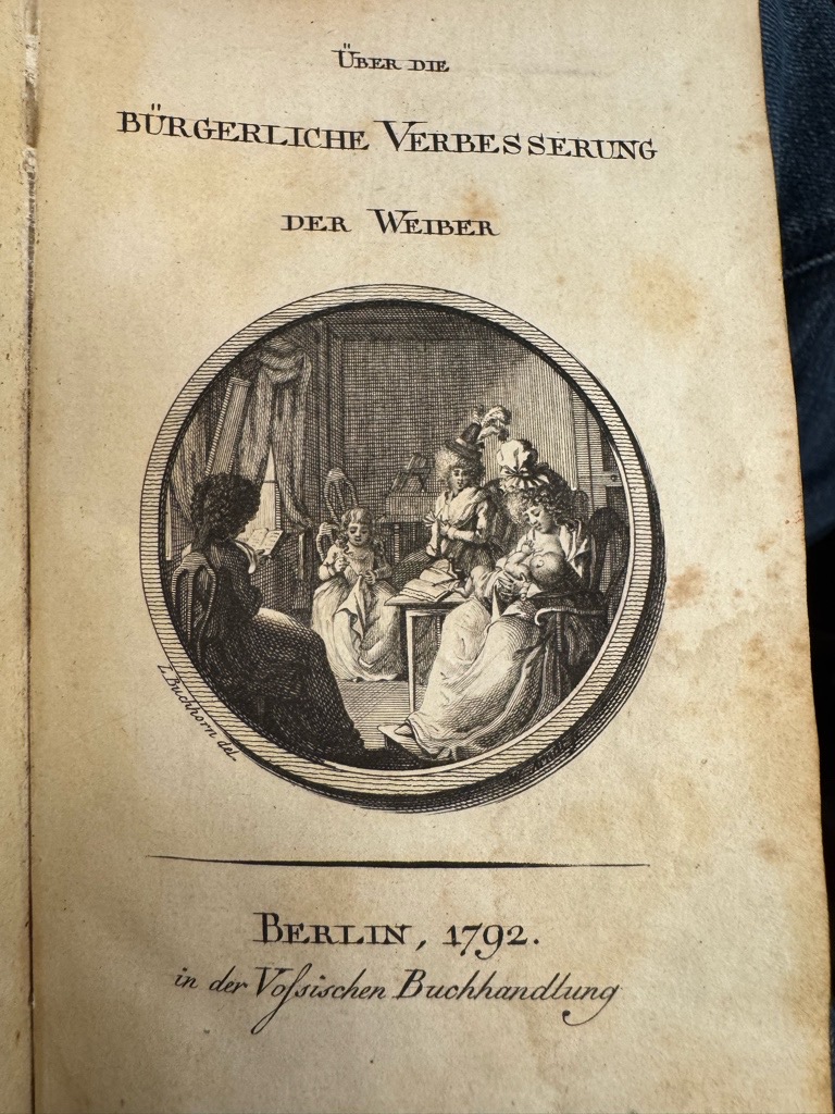 VD18 11056096. Goedeke IV/1, 688, 16. Schulte-Strathaus 21. Hayn-Gotendorf III, 271. Holzmann-Bohatta IV, 6746. Erste Ausgabe der berühmten Schrift zur Emanzipation der Frau und zur gesellschaftlichen und rechtlichen Gleichstellung der Geschlechter. Hippel setzt hier die Ideen fort, wie er sie schon in seinem bekannten Werk Über die Ehe (1774) gegen das patriarchalische Ehewesen formuliert hatte. Bemerkenswert ist Hippels abschließende Folgerung, dass die Männer, indem sie die Frauen unterdrückten, selber mehr verlieren als die unterdrückten Frauen. Ein paar Zitate können Auskunft geben, wie modern und grundlegend die „Gleichberechtigung“ damals schon dachte: „Sind denn die Weiber nicht eben so gute Menschen als wir.(…) Die Halbe der Menschheit soll der andern untergeordnet sein – warum? (…) Man verwehrt ihnen die Waffen der Vernunft und sagt dann, sie seien zu schwach sie zu führen. (…) Was würde ma von einem Staate sagen, der die Hälfte seiner Kräfte schlummern ließe?“ (…) Die Ehe ist ein Vertrag, und doch hat nur die eine der beiden Parteien Recht. (…) Nicht Vorrechte der Weiber, sondern gleiche Rechte fordere ich.“