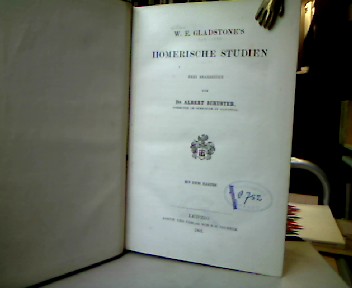 gutes Exemplar, zarte Bleistiftanstreichungen, Stempel auf Titelblatt u. -rückseite. Altertumswissenschaftliches Hauptwerk des späteren britischen Premierministers. 1. Achaeis oder Ethnographie der griechischen Stämme. 2. Olympos oder die Religion des homerischen Zeitalters. 4. Ilios oder Vergleich der Troer und Griechen. 5. Aoidos oder Beiträge zur Poetik Homers.