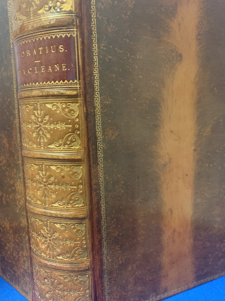 Die sehr angesehene MacLeane Edition der Werke von Horaz in lateinischer Sprache mit kritischem englischen Kommenar in äußerts dekorativem Einband.