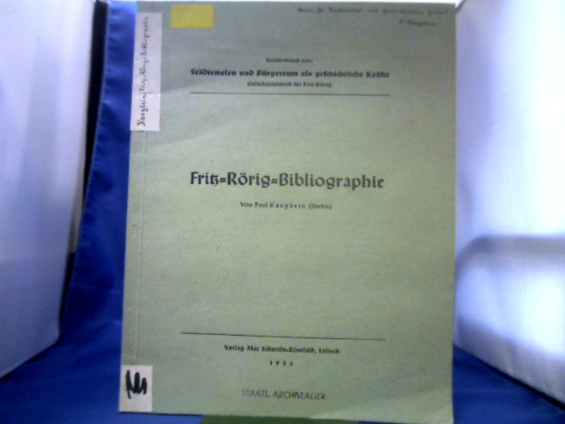 Sondrdruck aus: Städtewesen und Bürgertum als geschichtliche Kräfte. Gedächnisschrift für Fritz Rörig.