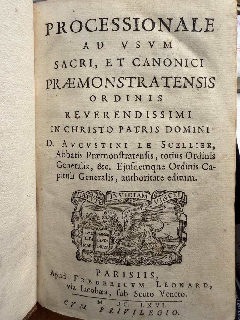 Frühe und gegenüber der 1727 und folgender Ausgabe sehr seltene Ausgabe der Pcozessionale im Oktav Format in sehr gutem Erhalt.