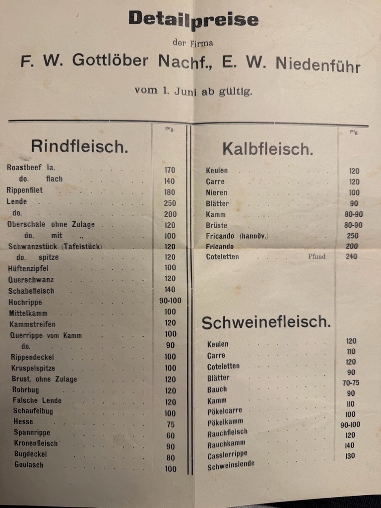 Weiss 2694. Methler 4132. Dritte, unveränderte Auflage des erstmals 1886 erschienenen Kochlehrbuchs: „Einzigartig nicht nur durch die konsequente ‚Systematisierung‘ der Kochkunst, sondern auch durch die Verzeichnisse aller essbaren Tiere und Pflanzen aller Weltteile, so wundert es daher nicht, dass Wildkatzen, Siebenschläfer, Hamster, Auerochsen, Delphine, Kohlmeisen, Feldlerchen, Buntspechte und Dumme Lumme als essbare Tiere angepriesen werden. Der Verfasser (1843-1900) betrieb die bedeutendste Gewürzfabrik der Zeit. Die ‚Naumannschen Gewürze‘ wurden von zahlreichen Autoren in ihre Kochbücher übernommen“ (Weiss). Neben den insgesamt 3829 Rezepten finden sich im Anhang auch einige Tafeln zu Gewürzmischungen und Gewürzsalzen. Durch ein umfangreiches Register erschlossen. – Wohlerhaltenes, nahezu fleckenfreies Exemplar. Beiliegend ein historischer Bestellzettel eines Fleischhändlers.