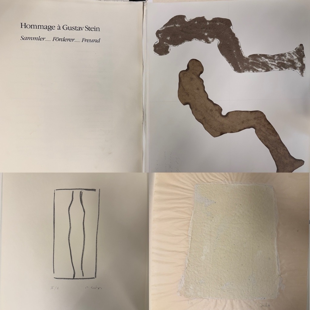 Mappenwerk „Hommage à Gustav Stein, Sammler-Förderer-Freund“. mit 34 Druckgraphiken von Jürgen Brodwolf, Heinrich Brummack, Emil Cimiotti, Roberto Cordone, Michael Croissant, Wolfgang Finck, Lothar Fischer, Bert Gerresheim, Gabriele Grosse, Edgar Gutbub, Otto-Herbert Hajek, Erich Hauser, Jochen Hiltmann, Peter Klasen, Dieter Kraemer, Alf Lechner, Wilhelm Loth, Willy Meyer Osburg, Ansgar Nierhoff, Reinhard Omir, Heinz-Günther Prager, Hans Peter Reuter, Günther-Ferdinand Ris, Wil Sensen, Horst Skodlerrak, Rolf Szymanski, Karl-Ludwig Schmaltz, Michael Schoenholtz, Rudolf Schoofs, Bernard Schultze, Dieter Stein, Hans Steinbrenner, Nikolaus Störtenbecker bzw. Hann Trier.