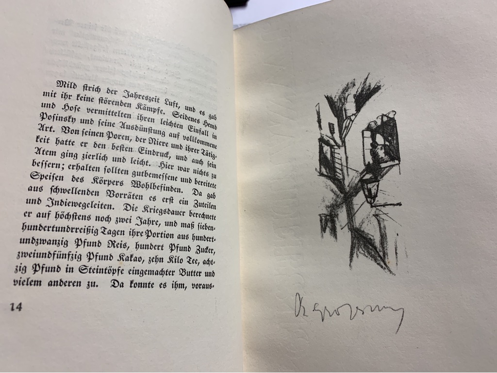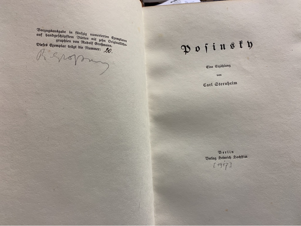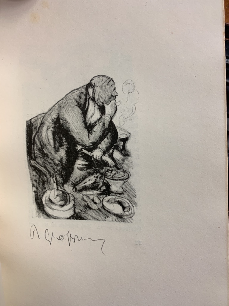 Raabe-Handbuch 291 26. W.-G. kennt nur die spätere Ausgabe von 1917, die bei Harz in Berlin erschien. Erste Ausgabe Nummer 20 von 50 Exemplaren der Vorzugsausgabe auf Bütten mit 10 (recte 9) signierten Originallithographien von Rudolf Großmann.