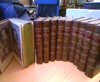 2 gestochene Portraitfrontispize ( Sullly / Henry IV) xlvj S. Kupferstich ( Pyramide) 322 S.; 429 (recte 439); 436 S.; 355 S.; 378 S.; 376 S.; 380 S.; 294 S.; 308 S.; 138 + 112 S. 8°, polierte Ganzlederbände der Zeit über fünf Bünde mit goldgeprägten kaminroten Ledertitelrückenschild.