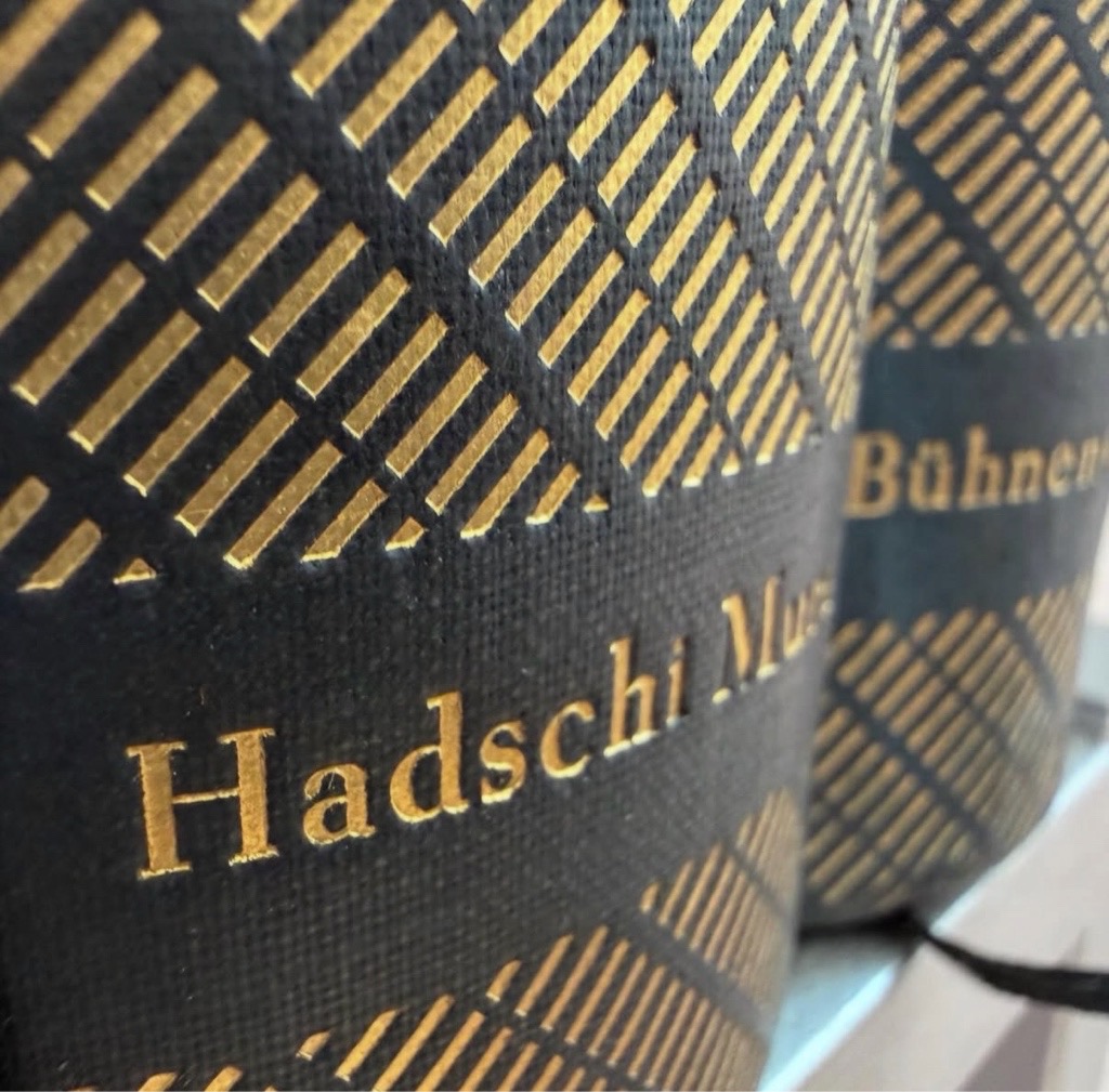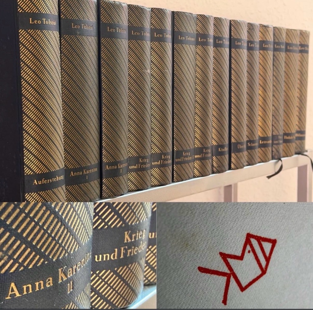 Goldgeprägte, dunkelblaue Originalleinenbände in ikonischer Malik Gestaltung.