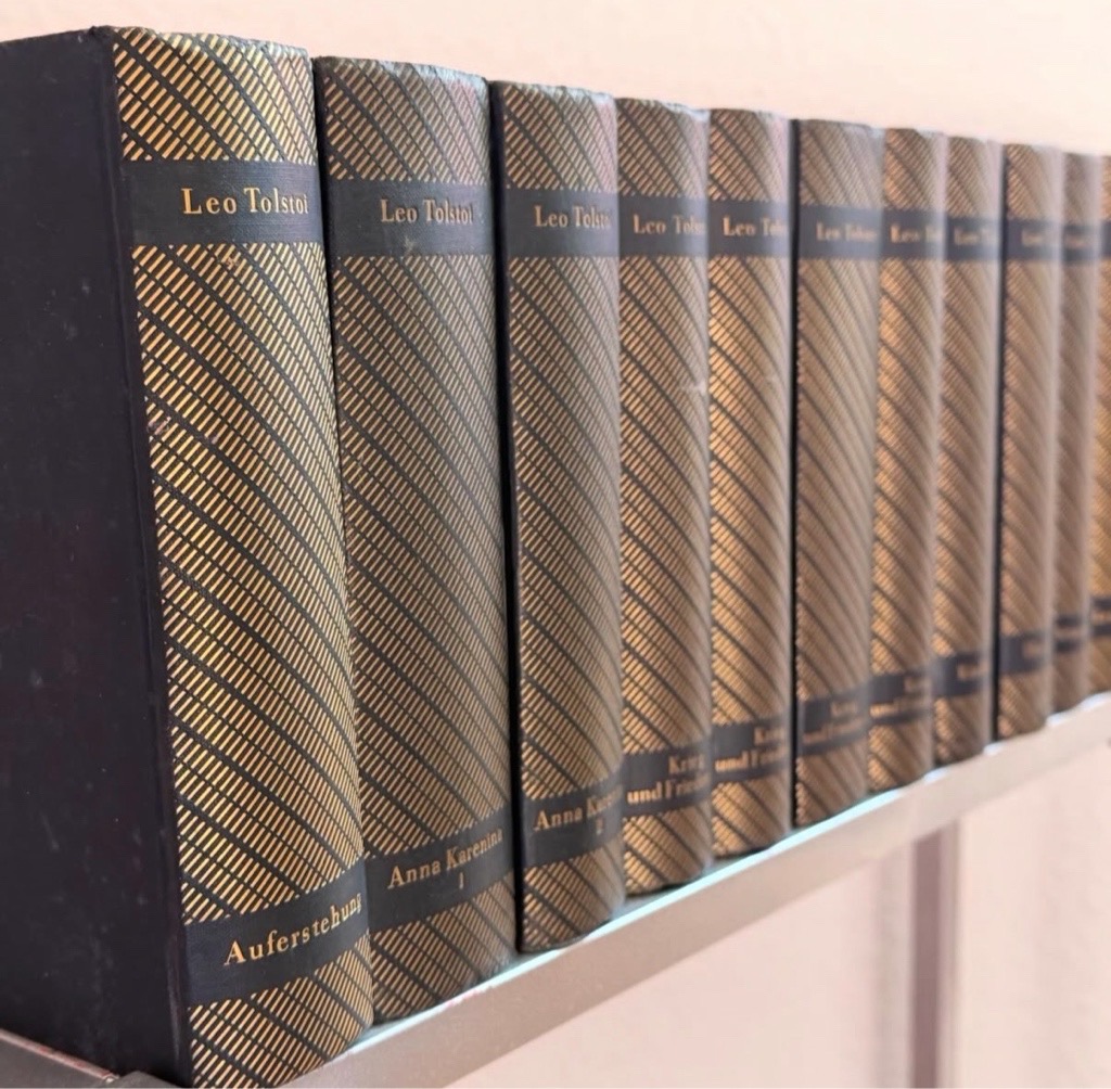 Goldgeprägte, dunkelblaue Originalleinenbände in ikonischer Malik Gestaltung.